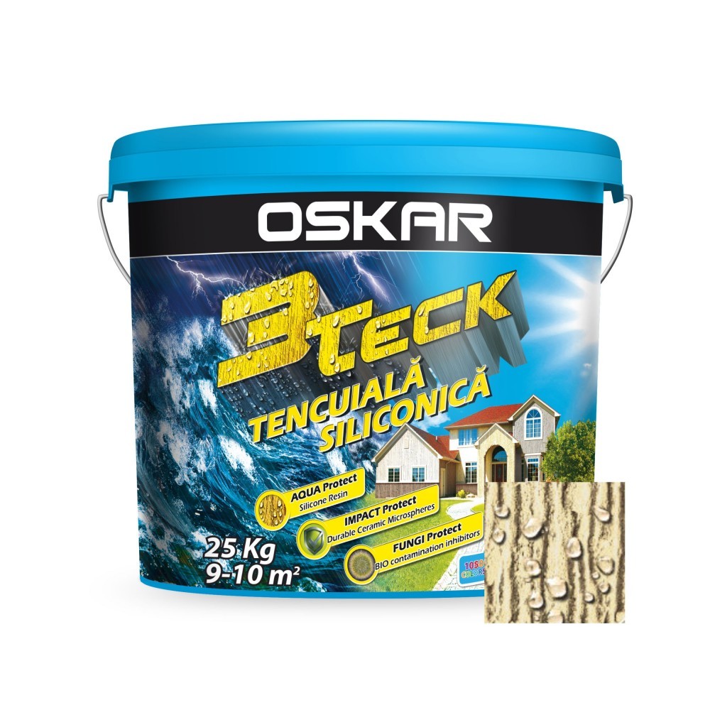 Tencuiala decorativa siliconica Oskar 3Teck, structurata bob de orez, alb, 25 kg